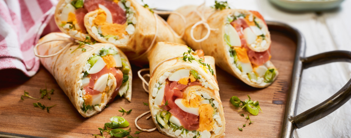 Wraps mit Lachs, Kresse und Ei